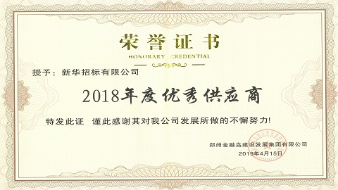 新華招標有限公司榮獲“2018年度優(yōu)秀供應(yīng)商”證書