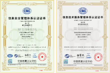 喜報|新華招標有限公司榮獲 “信息安全管理體系認證證書與信息技術服務管理體系認證證書”